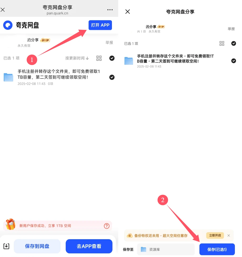 免费领取夸克网盘1TB空间+每天领取永久容量教程
